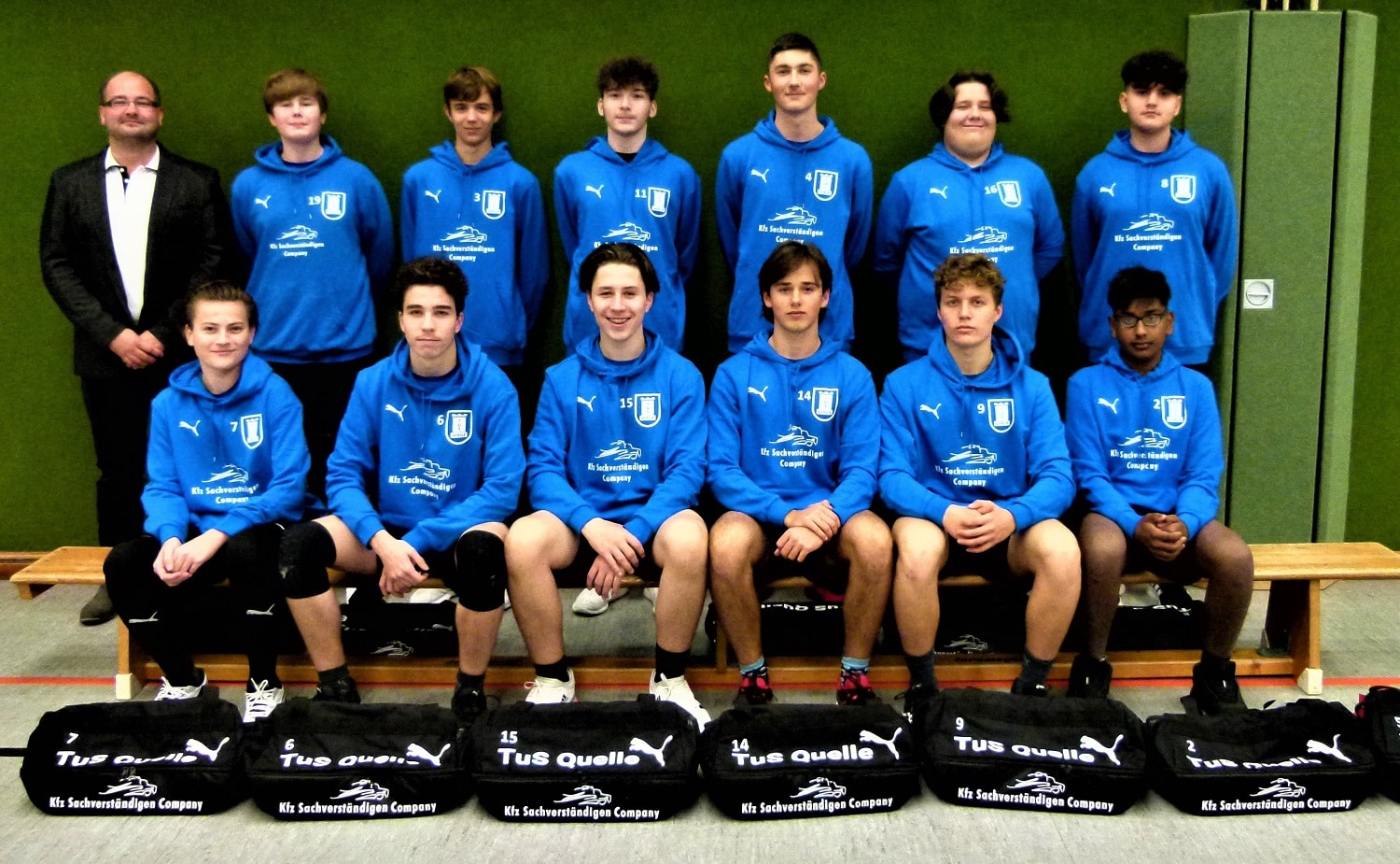 Die Jugendlichen unserer männlichen U18 freuen sich über neue Hoodies und Sporttaschen. Durch die Unterstützung durch die KFZ Sachverständigen Company -Ihr unabhängiges Sachverständigen Büro Hoppe – konnten die jugendlichen Spieler gut ausgestattet werden. Auf dem Bild ist Inhaber Dennis Hoppe neben der Mannschaft zu sehen. Der Hauptsitz des Unternehmens ist in Steinhagen. Nähere Informationen unter: