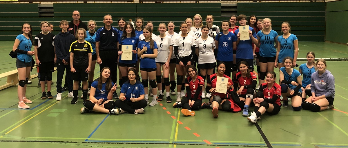 Heute hat die Volleyballabteilung des TuS Quelle ein U16-Turnier ausgerichtet. Insgesamt 6 Mannschaften aus den Vereinen Wiedenbrücker TV, Gütersloher TV, VfB Schloß Holte und TuS Quelle spielten gegeneinander. Das Team TuS Quelle 1 belegte den dritten Platz. Den ersten Platz erreichte das Team vom Gütersloher TV. Sie haben alle Spiele gewonnen.